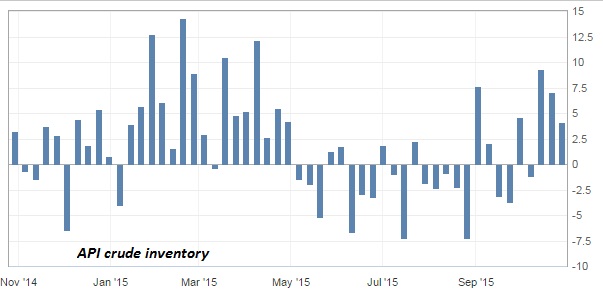 - American Petroleum Institute's (API) weekly report showed inventory surplus by 4.1 million barrels, third consecutive rise in a row.