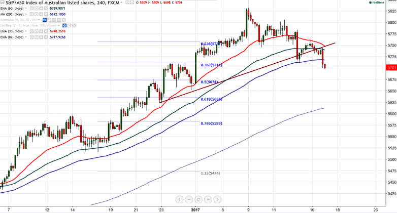 •ASX200 has broken major support at 5718 and declined till 5698 at the time of writing. It is currently trading around 5701.