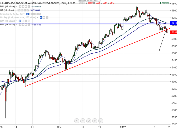 •ASX200 breaks trend line support at 5665 and declined till 5643 at the time of writing. It is currently trading around 5686.