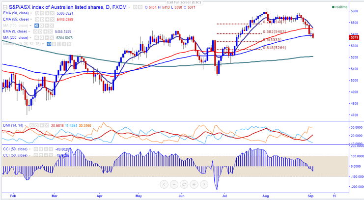 - The major support is around 5333 (50% retracement of 5041 and 5625) and any break below targets 5300 (cloud bottom)/5264 in the short term.