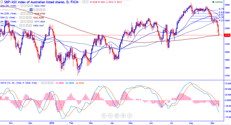 - The major support is around 5208 (200- day MA) and any break below targets 5150/5100 in the short term.