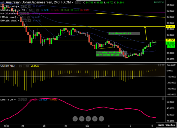 It is good to buy only above 85.13 with SL around 84.50 for the TP of 87.20