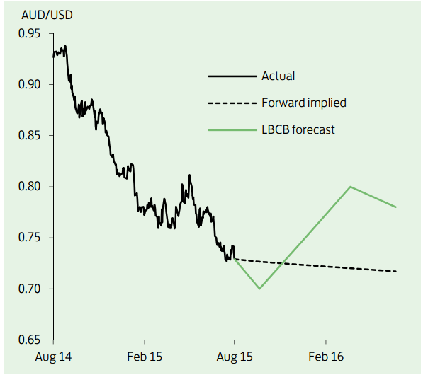 "Given the soft backdrop and the prospect of a rise in US interest rates next month, we look for AUD/USD to test key support down around 0.70-0.69 around the September Fed meeting. If, as we expect, this support holds and commodity prices start to recover, AUD/USD should move higher into year end," notes Lloyds Bank.