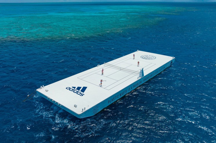 Adidas built a giant, floating tennis court made of recyclable plastic materials just off the coast of Australia to raise awareness against the dumping of plastic in the world's oceans.