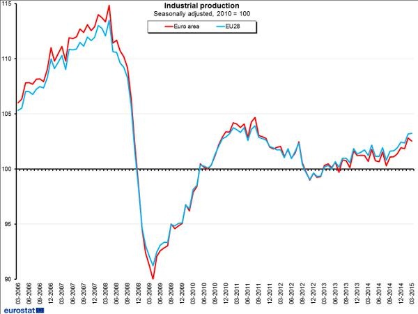 - Industrial production might seem strong at 1.8% y/y, however dropped by -0.3% m/m. It is showing signs of economic reversal, however still anemic enough to not to go against ECB.