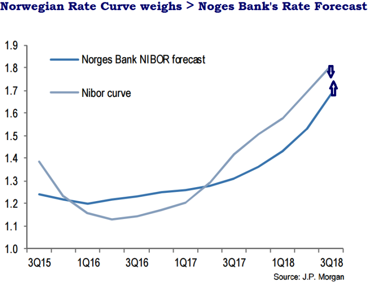 The Norwegian rate curve prices more cuts through 201 than the Norges bank's path which limits downside for NOK.