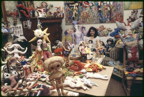 Mirka Mora, Studio, Rennie Ellis. 1985. Courtesy of the Rennie Ellis Photographic Archive, State Library of Victoria.