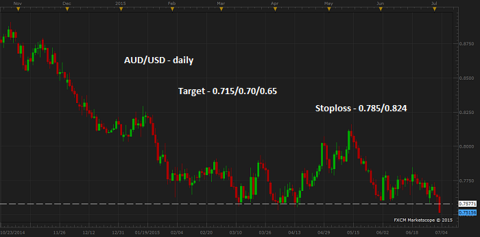 - Go short on Aussie with target of 0.70 area and 0.65 area with resistance around 0.824 area. This is medium term call and price might take a while to reach target.