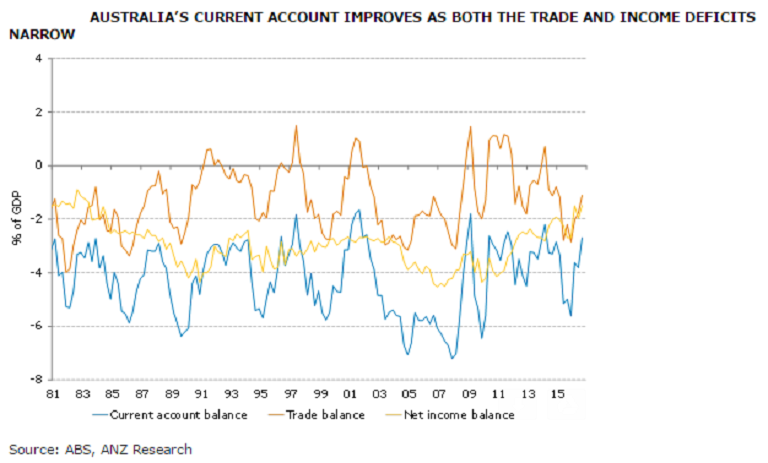 Australia’s current account deficit (CAD) narrowed to 2.7 percent of GDP from an upwardly revised 3.8 percent in Q2 2016. The improvement was driven by a narrowing of the trade deficit to AUD4.7 billion from AUD7.4 billion in Q2 2016 as well as an improvement in the net income deficit (from 2 percent of GDP in Q2 to 1.5 percent in Q3).