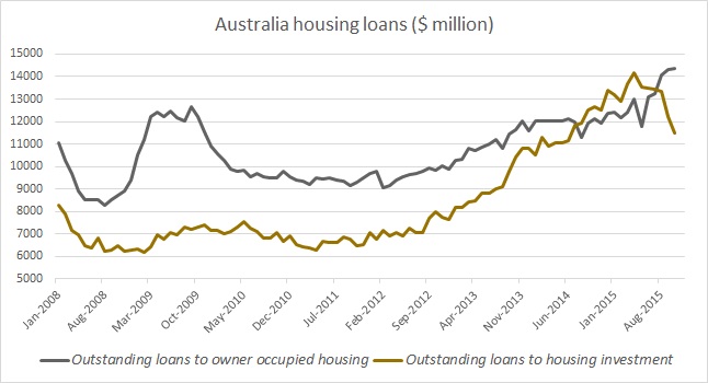 Loans issued by banks for investment purpose, just rose from $7 billion back in 2012 to $14 billion by early 2015. The size of outstanding loans issued for investment took over loans issued for ownership residential purpose by 2014. These were probably sufficient enough for RBA to address the issue and mention such in monetary policy statement.