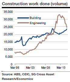 Australian public engineering work, rather than expanding as in the previous two quarters, is expected to post little change. In contrast, building construction by the private sector is likely to have expanded further, at a similar pace as in the previous two quarters, given strong increases in building approvals throughout 2014 and in the first quarter of this year.