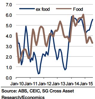 Australia's recent retail sales data were definitely on the soft side, with average monthly gains of 0.2% over the five months to July, which is exactly half the average pace recorded in 2013/14. This weakness stems in substantial part from a supermarket price war which has depressed nominal growth in this segment, non-food sales have accelerated.