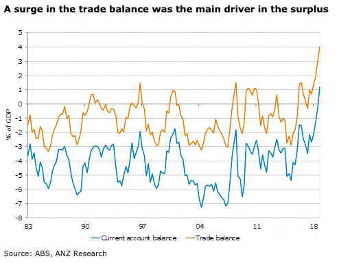 Australia’s current account was in surplus in Q2, improving upon the revised AUD1.1bn (previously AUD2.9bn) deficit in Q1. The trade balance increasing to AUD19.9bn from AUD14.8bn was the main driver of this surplus. The fall in the income deficit added to the size of this surplus by decreasing from AUD15.5bn to AUD13.9bn this quarter, ANZ Research reported.