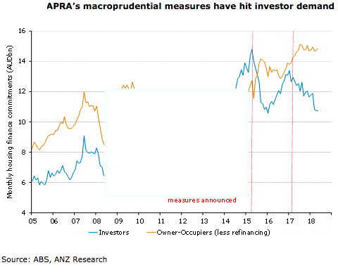 Even the removal of the 10 percent growth limit, announced at the end of April 2018, is unlikely to drive renewed strength. As a result, the share of new lending going toward investors is at the lowest level in several years.