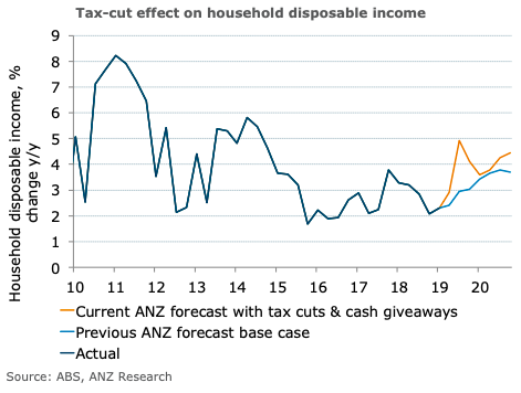 Australia’s tax cuts is expected to boost household consumption in the September and December quarters by approximately $7.2 billion; as returns vary in timing; a slower and more spread-out pattern of spending growth is likely, according to the latest report from ANZ Research.