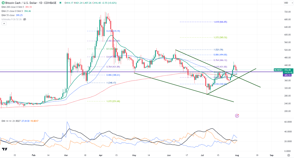 BCHUSD has re-tested the level around $407 and shown a minor pullback.