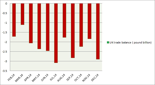 - UK trade balance so far continued its dismal performance and today's data may not be any exception. In December trade balance was £ -2.9 billion.