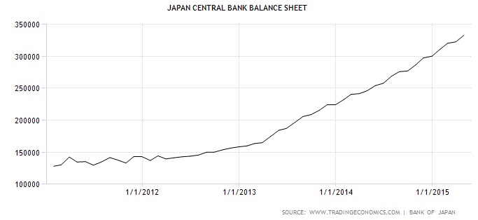 - This massive rate of purchase has pushed Central bank's balance sheet to record high. As of latest now balance sheet size of BOJ stands at ¥ 332 trillion.