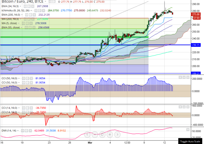 Recommendation: Buy BTC/EUR around 268, SL 257, Target 282/300.