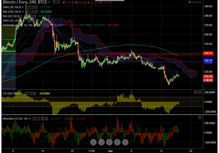 Recommendation: Sell BTC/EUR around 217 SL 224, Target 208/200.