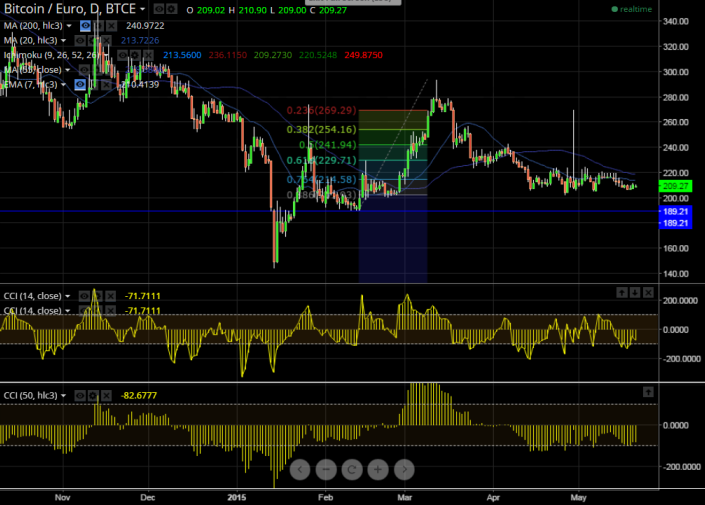 We prefer to sell BTC/EUR around 212 for the target of 200 with stop around 219.