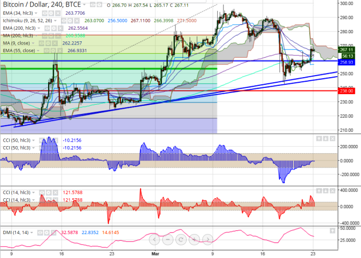 - BTC/USD is consolidating between $220 and $243 and overall trend is weak as long resistance $246 (trend line joining $454 and $304).