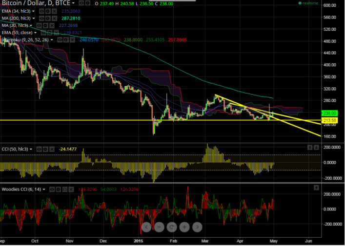 - BTC/USD is trading well above both short term resistance $237 (trend line joining $269.90 and $258.80) and also long term resistance $225 (trend line joining $299 and $257.48) and this confirms short term bullishness, a jump till $258 cannot be ruled out.
