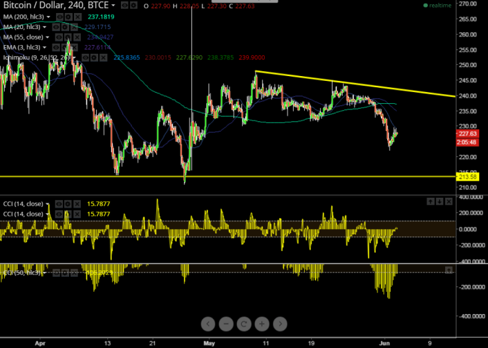 - BTC/USD has retreated till $222 after making a high of $244 and short term bullishness can be seen only above $237.