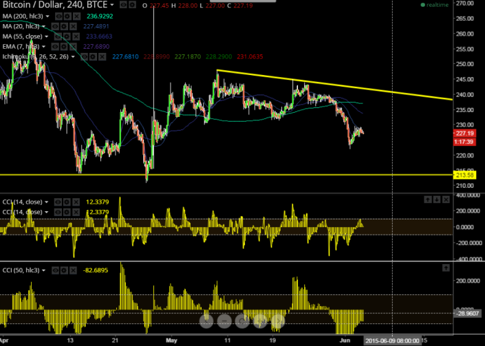 - BTC/USD has retreated till $222 after making a high of $244 and short term bullishness can be seen only above $237.
