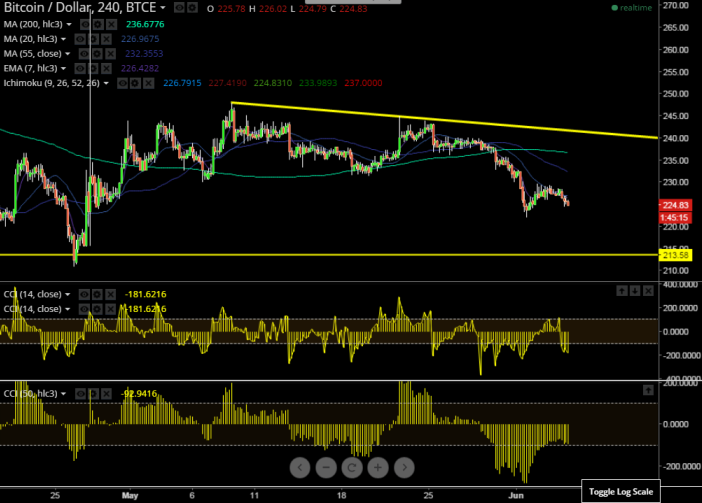 - BTC/USD has retreated till $222 after making a high of $244 and short term bullishness can be seen only above $237.