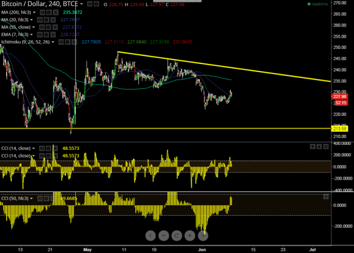 - BTC/USD has retreated till $222 after making a high of $244 and short term bullishness can be seen only above $237.