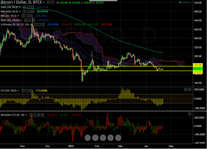 We prefer to Sell BTC/USD around $225 SL $235, Targets $213/$208.