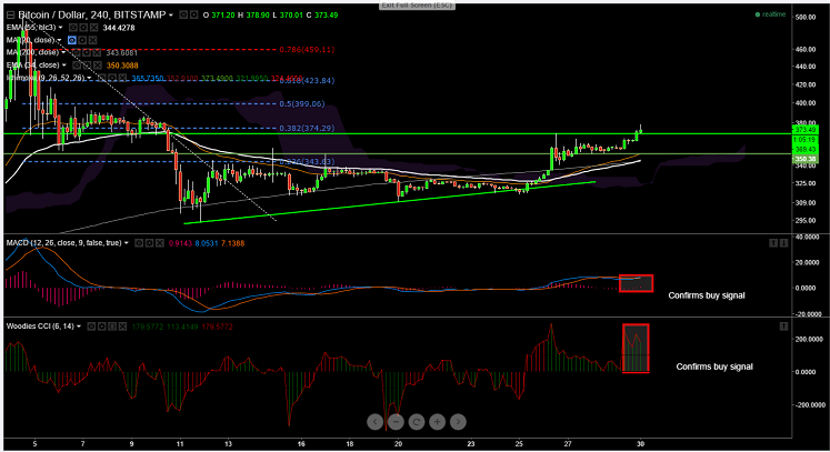 - The pair has broken major resistance $370 and jumped till $379 at the time of writing . It is currently trading around $378.