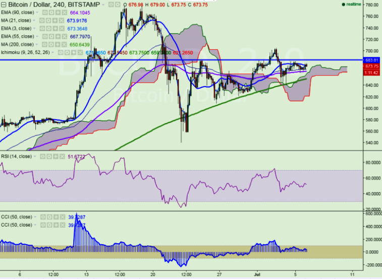 BTC/USD has slightly recovered after making a low of $662. It is currently trading at $674.78 levels at press time.