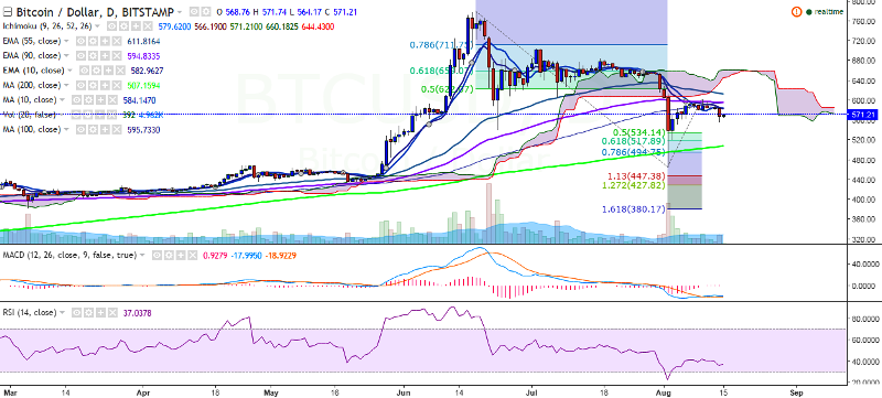 BTC/USD has declined sharply after hitting a high of 603 levels. It has plunged to 556.24 levels and currently trades at 569.75 levels at the time of writing (Bitstamp).