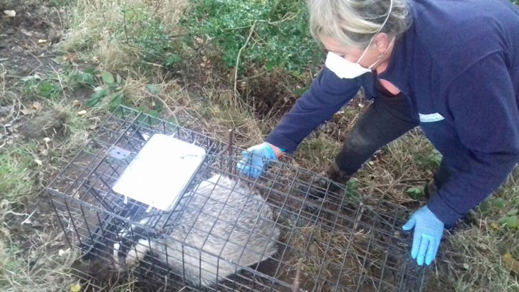 A badger is caught and vaccinated by a trained specialist. Jason Skeen/Derbyshire Wildlife Trust, Author provided