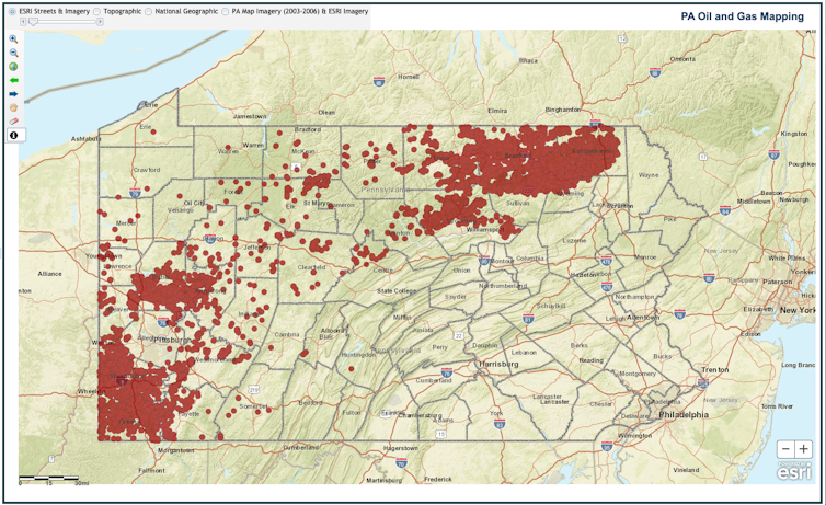 Active oil and gas fracking wells in Pennsylvania. (Pennsylvania Department of Environmental Protection)