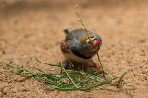 We studied zebra finches, small songbirds native to Australia. Zebra finches have been bred in captivity for years and are common in pet stores and scientific research. These birds are ideal for our test, as males build many nests in short periods of time using a range of materials.
