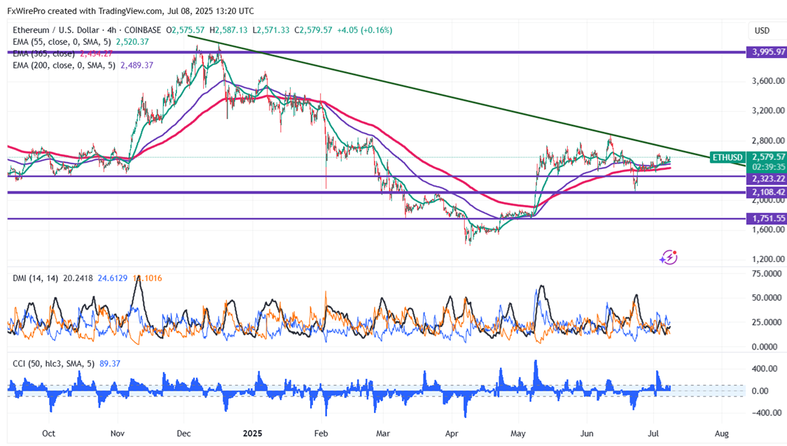 ETHUSD is consolidating in a narrow range between $2637 and $2475 for past four days. It hits an intraday low of $2523 and is currently trading around $2578.
