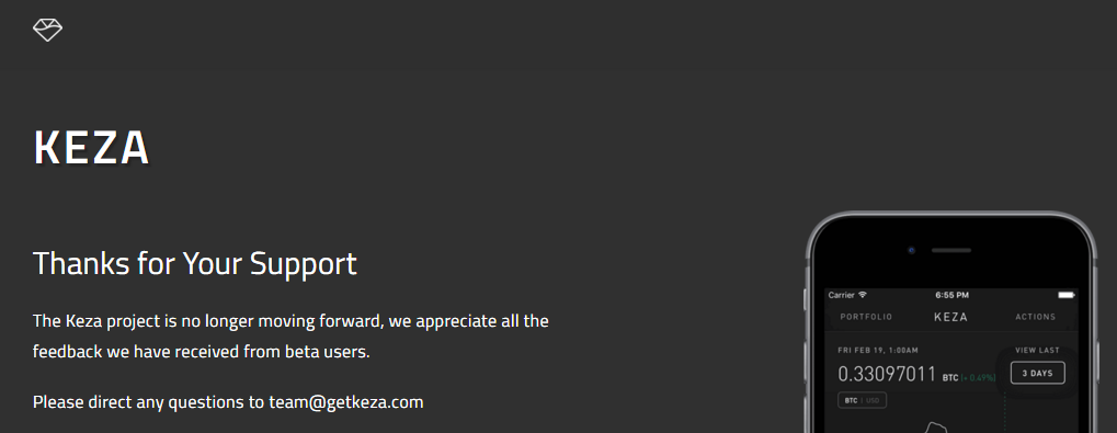 “The Keza project is no longer moving forward, we appreciate all the feedback we have received from beta users.”