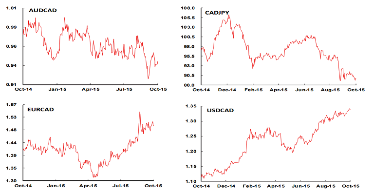 The Canadian dollar continues to be buffeted by trends in global commodity prices and market risk sentiment. The impact of low global oil prices are apparently playing a significant role in CAD weakness. Supply/demand dynamics remain a constraint on a significant rebound in energy prices in the near-to-medium term.