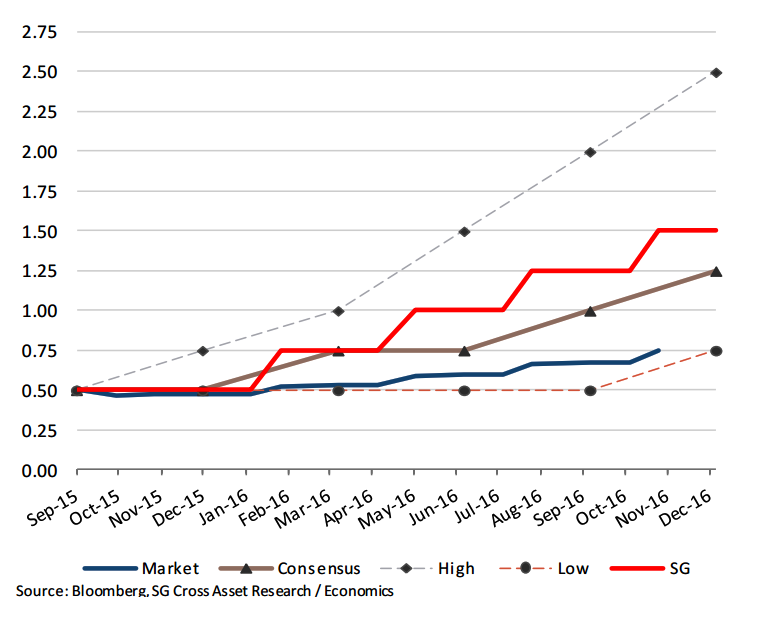 "The output gap is now only ½% and predicted to close within a year. This is a strong signal that the MPC plans a rate increase before long but even the hawks temper this message by the observation that the recent fall in inflation to around zero buys more time", says Societe Generale in a research note.