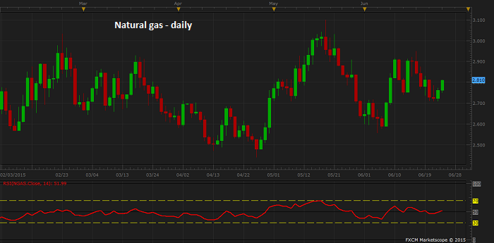 Natural gas is currently trading at $2.81/mmbtu. Support lies at $2.7 and $2.45. Resistance lies at $2.95 and $3.1