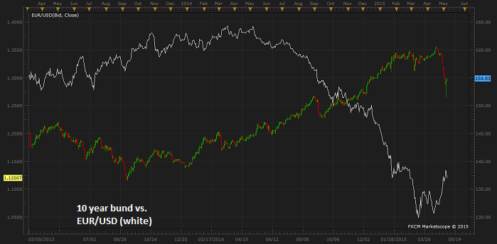 - Heavy price swings and latest rally in EUR/USD has been closely associated with rise in bond yields across the yield curve. Last night 10 year bund yield spike to 0.75% same time as Euro hit 1.139 against dollar. However sharp buying in bund during New York session led yield lower closing around 0.581%.