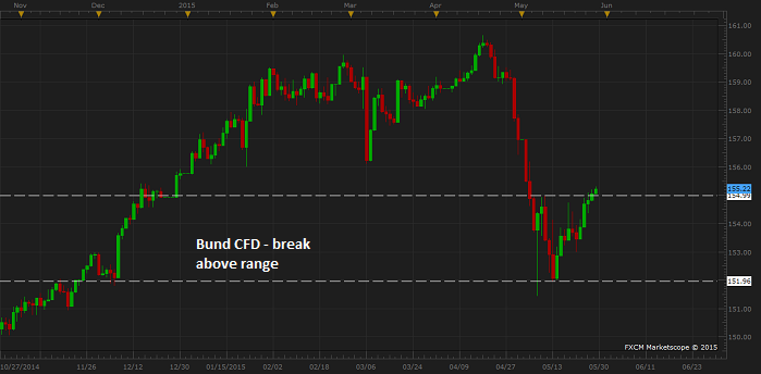 Bund CFD is currently trading at 155.17 and 10 year yield just about 0.52%.