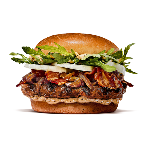 According to the fast-food chain, the burger features flame-grilled 100 percent British and Irish Aberdeen Angus beef, four slices of bacon, sliced onions, and fresh rocket.