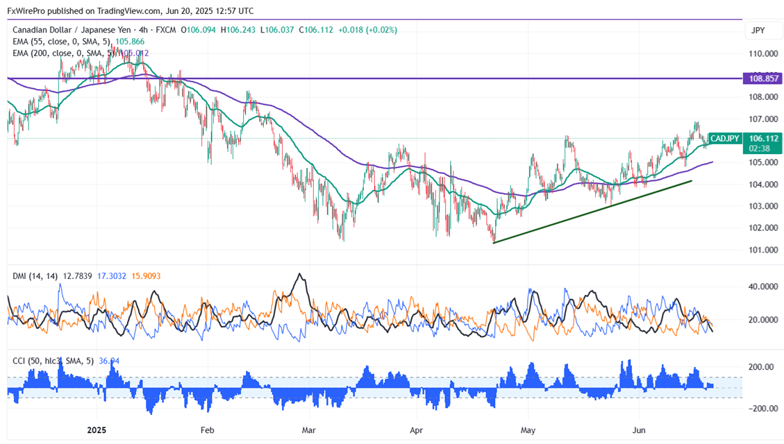 CAD/JPY showed a minor sell-off after weak Canadian retail sales. It hits an intraday high of 106.24 and is currently trading around 106.047.