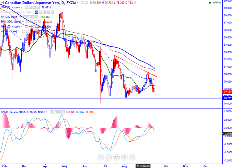 - CAD/JPY has jumped till 78.63 yesterday and declined sharply from that level. It is currently trading around 77.55.