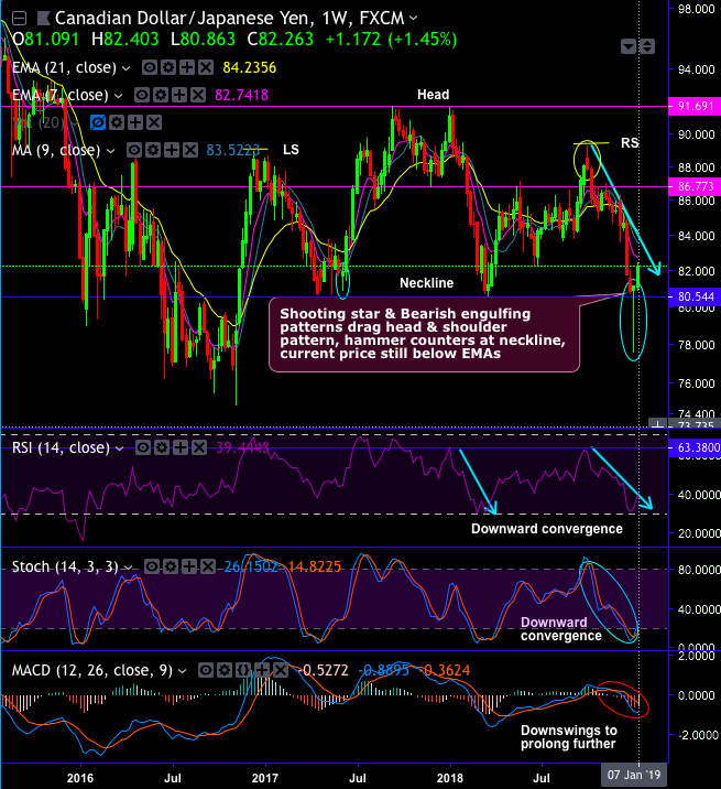 CADJPY bounce back past 82.300 levels, extending 3rd week highs ahead of lingering hopes of 25 bps hikes from the scheduled Bank of Canada monetary policy. The major trend of this pair has been in consolidation phase since November’2016 and it seems to be continued for now (refer above technical chart).