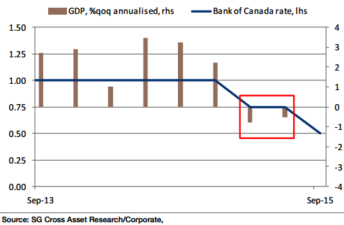 "By end 2015, forecast for USD/CAD is 1.30", says Societe Generale.